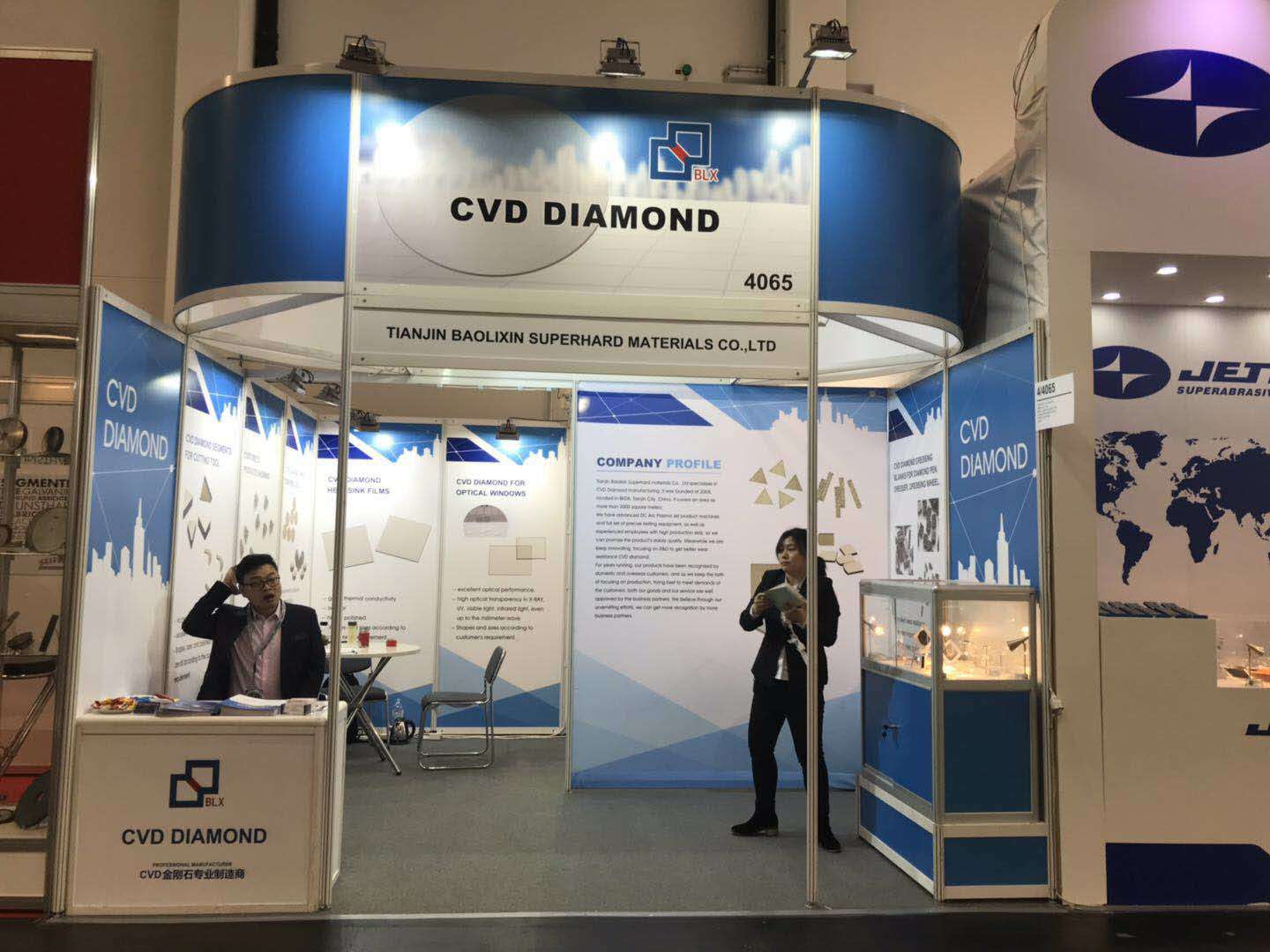 Tianjin Baolixin Superhard materials Co., Ltd, as a company specializes in CVD diamond manufactuing attend this grand trade fair and gets a great success in the GrindTec 2018.We are keeping innovating, focusing on R&D to get better wear resistance CVD diamond,the CVD diamond blanks we produced are well used by dressing, cutting, drilling tools etc.We would like to cooperate with oversea customers and we have a professional sales team, which is ready to meet your needs by continuous management improvement and service enhancement.